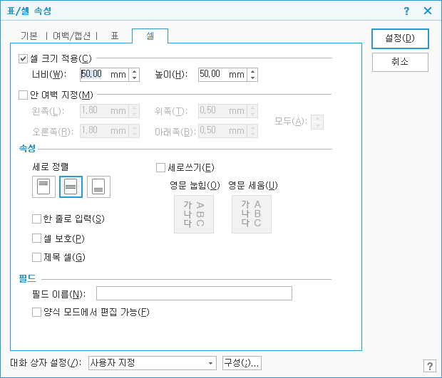 #한글문서, 셀(표) 크기를 정확하게 지정하는 방법이 있나요?